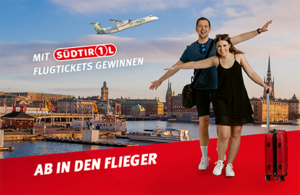 Vom 16. bis 27. Februar 2026 vergeben wir von Montag bis Freitag täglich einen Gutschein für einen Hin- und Rückflug für 2 Personen ab Bozen: