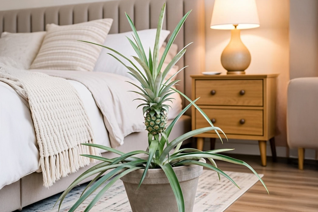 Woran denkt man sofort, wenn man das Wort „Ananas“ hört? Natürlich an die schmackhafte Frucht. Doch nur wenige wissen, dass die Ananas auch eine wunderschöne Zimmerpflanze ist, die sich besonders gut für das Schlafzimmer eignet: Sie gilt als perfekte Anti-Schnarch-Pflanze.