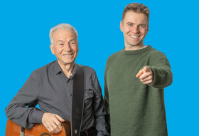 Zwei Generationen, ein Abend voller Humor und Musik: Jakob Windschnur präsentiert Highlights aus „A Kloaner Schlawiner“ und neue Nummern – gemeinsam mit seinem Vater, Kult-Liedermacher Sepp Messner Windschnur.