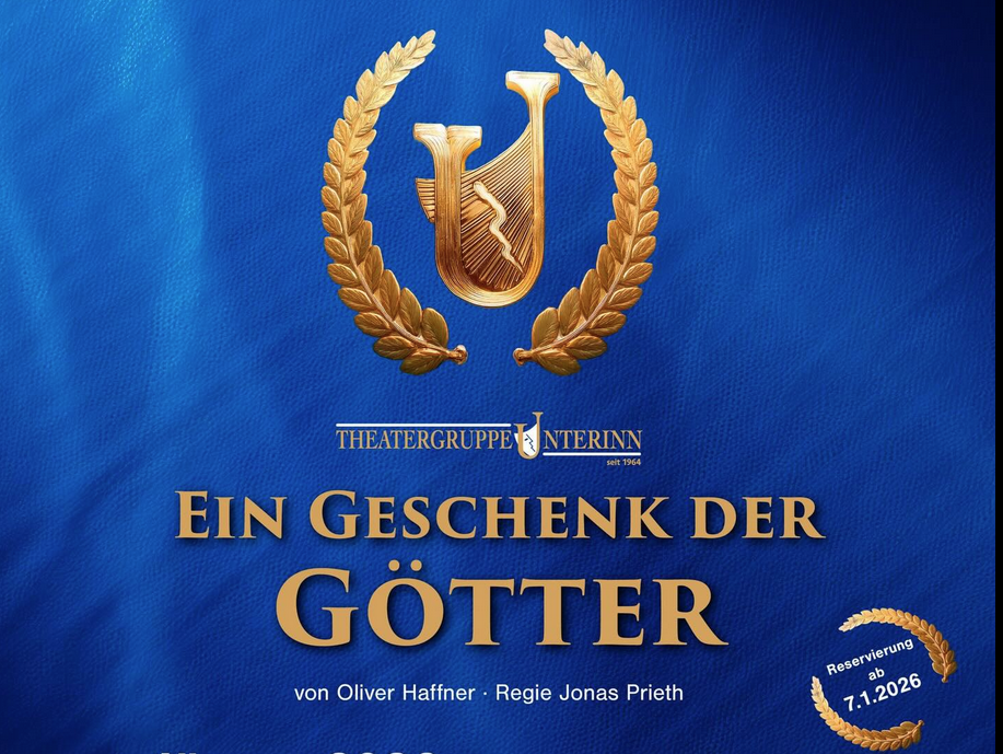 Mit „Ein Geschenk der Götter“ bringt die Theatergruppe Unterinn ein Stück von Oliver Haffner auf die Bühne des Vereinshauses Unterinn. Regie führt Jonas Prieth.