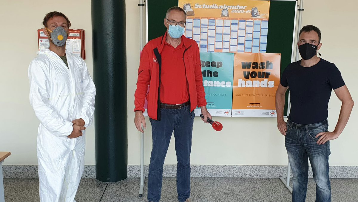 Südtirol hat gewählt. Wie, das erfahren wir erst im Laufe des Tages. Vielerorts wurden Schulen als Wahllokale genutzt. Jetzt muss wieder alles für den normalen Betrieb hergerichtet werden. In Coronazeiten wird besonders instensiv geputzt. Denn die Klassenzimmer müssen auch Virenfrei sein. In einem weißem Schutzanzug und mit Maske geht Manfred Verginer an die Arbeit. Mit einer Maschine so groß wie eine Apfelkiste wird jeder Raum zwischen 10 und 30 Minuten mit Wasserstoffperoxid besprüht.