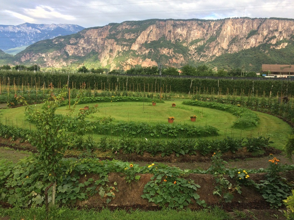 Über 7000 Apfelbauern bewirtschaften in Südtirol ihre Felder und machen unser Land somit zum größten zusammenhängenden Apfelanbaugebiet Europas. Da auf den Feldern über Jahrzehnte immer wieder das Gleiche angebaut wird spricht man hier von Monokultur. Es gibt aber auch Bauern, die umdenken und statt Äpfeln wieder Gemüse anbauen. Ein spannendes Beispiel dafür gibt es im Unterland. Am südlichen Eingang des Unterlandler Dorfs Branzoll, zieht ein kreisförmig angelegter Permakultur Gemüsegarten alle Blicke auf sich. Kein Wunder, denn zwischen den ganzen monochrom angelegten Apfelwiesen sticht das Projekt, das die 3 Bauern Christoph Pizzini, Simon Micheletti und Edi Schrinzi ins Leben gerufen haben einfach heraus.