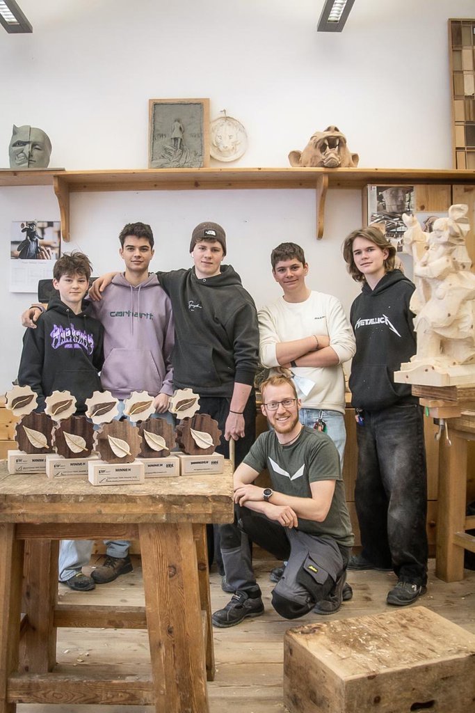 Grödner Handwerkskunst geht um die Welt: Die Trophäe für den „Green Skill Award“ in Turin wurde von der 3. und 4. Klasse der Landesberufsschule für Kunsthandwerk im Bereich der Bildhauerei- und Holzschnitzerei in St. Ulrich gefertigt.