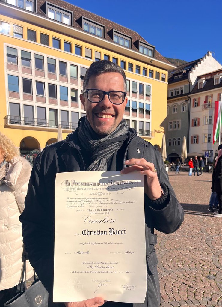 Für das jahrelange soziale Engagement wurde Christian Bacci heute auf dem Bozner Waltherplatz mit dem "Ritter des Verdienstordens der Italienischen Republik" ausgezeichnet.