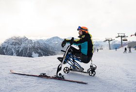 Um noch unabhängiger zu sein, ging Schraffl einen Schritt weiter: Er entwickelte ein zusammenklappbares Modell, das im Rucksack transportiert und bei Bedarf selbst eingesetzt werden kann. Ein praktischer Fortschritt für mehr Selbstständigkeit im Wintersport.