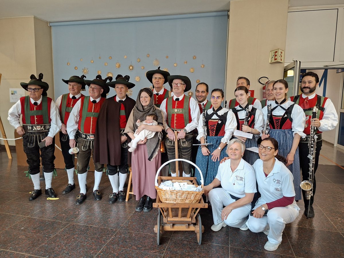 Die Stadtkapelle Bozen und die Schützenkompanie Bozen haben Krankenhaus-Patienten mit einer besonderen Aktion eine Freude bereitet. Mit der „Lebenden Krippe“ stellten sie in mehreren Abteilungen die Heilige Familie dar und begleiteten die Szene musikalisch. Als kleine Erinnerung erhielten die Patienten zudem ein Geschenk.