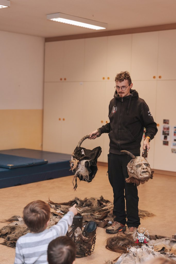 Wenn die Krampusse unterwegs sind, sorgt das bei vielen Kindern für Gänsehaut. Markus Sozzi möchte diese Angst nehmen. Seit fast zehn Jahren besucht er als Mitglied der Höllenschlucht Krampus Lana Kindergärten im Burggrafenamt und zeigt dort ganz ruhig und Schritt für Schritt, wie aus Fell, Glocken und Maske ein Krampus entsteht.