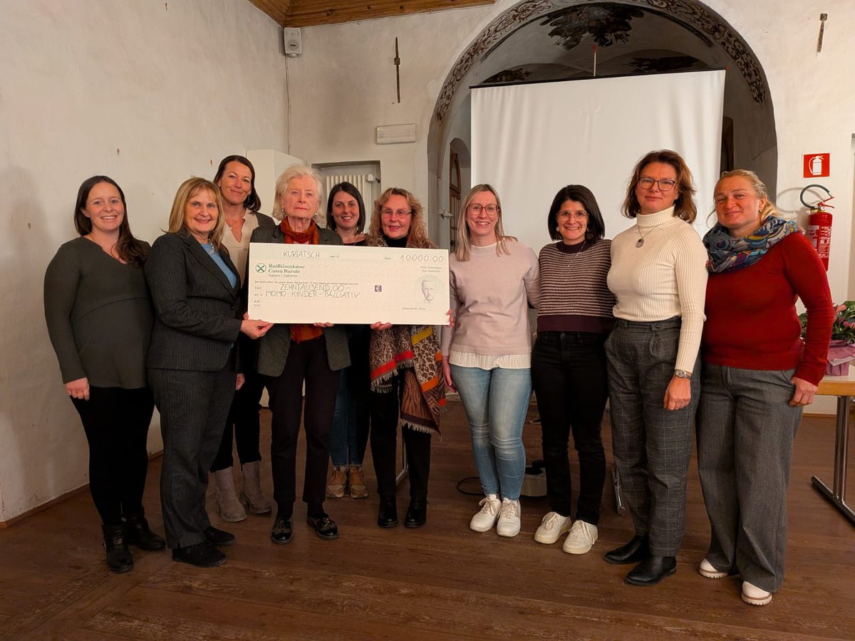 10.000 Euro für den ,,MOMO Förderverein Kinder-Palliativ in Südtirol E.O."– diese beeindruckende Summe konnte ein Weihnachtsmarkt in Kurtatsch in der Adventszeit sammeln. Möglich gemacht hat das die Südtiroler Bäuerinnenorganisation Kurtatsch, Penon, Graun und Entiklar mit viel Herzblut, Engagement und monatelanger Vorbereitung.
