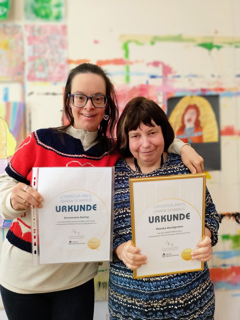 Ein ganz besonderer Literaturpreis geht nach Südtirol: Beim Ohrenschmaus Preis 2026 in Wien wurden zwei Südtirolerinnen ausgezeichnet. Annemarie Delleg und Monika Hochgruber überzeugten mit ihren Texten bei dem Wettbewerb, der Menschen mit Lernbehinderung eine Stimme gibt.