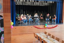Obmann Daniel Sanoll und seine Musikantinnen und Musikanten spielten am Nachmittag flotte, lustige Stücke und brachten damit ordentlich Schwung in den Saal. Jahr für Jahr ist der Auftritt beim Seniorenfasching fixer Bestandteil...